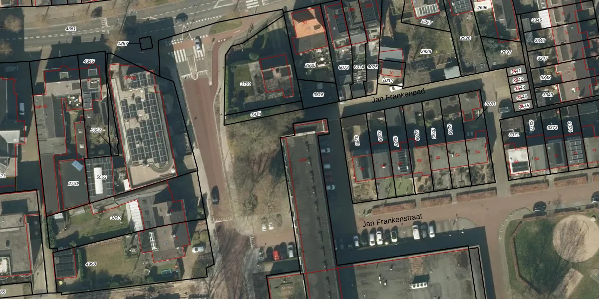 Jan Frankenstraat 16 is gelegen op kadastraal perceel RML00E3636. Deze kadastrale aanduiding is uniek en wordt gebruikt door het Kadaster om eigendomsrechten en andere zakelijke rechten vast te leggen. Het perceel maakt onderdeel uit van de kadastrale gemeente Rosmalen.