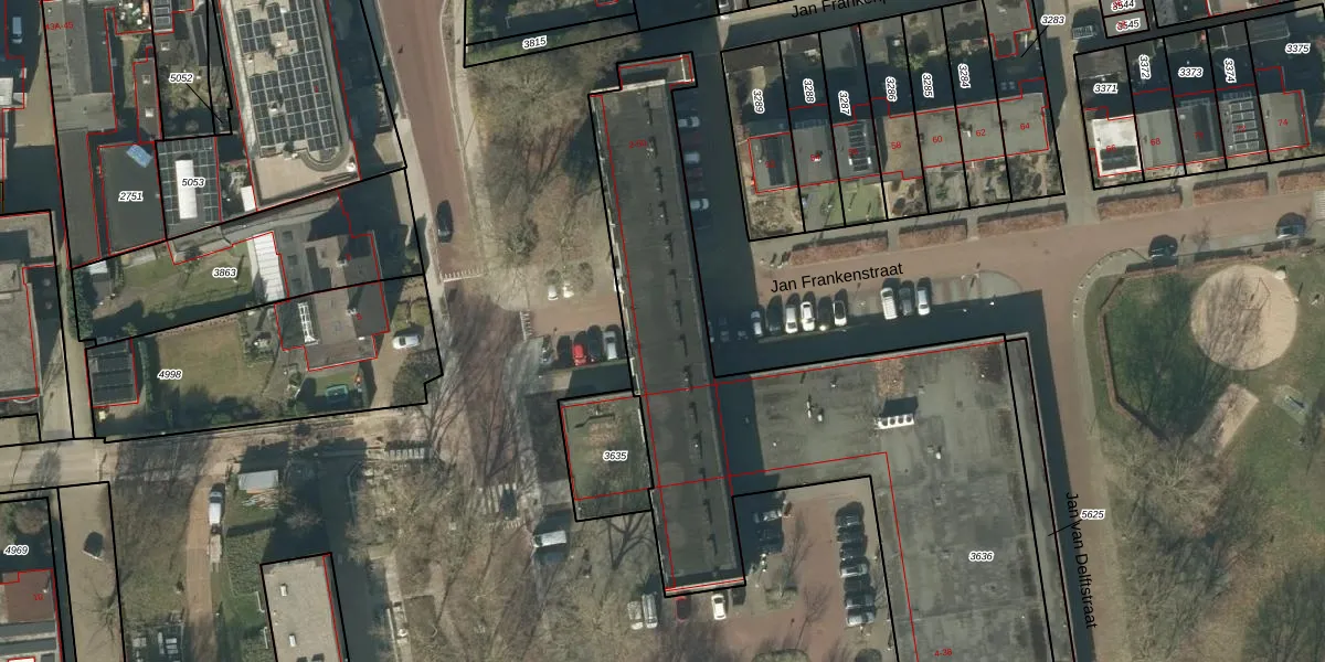Het perceel waarop Jan Frankenstraat 26 staat heeft een oppervlakte van 4670 m². Dit is een zeer groot perceel. De perceeloppervlakte wordt geregistreerd door het Kadaster. Gedetailleerde informatie over de maten van dit perceel kunt u vinden in het rapport Kadastrale kaart met maatvoering van Jan Frankenstraat 26.