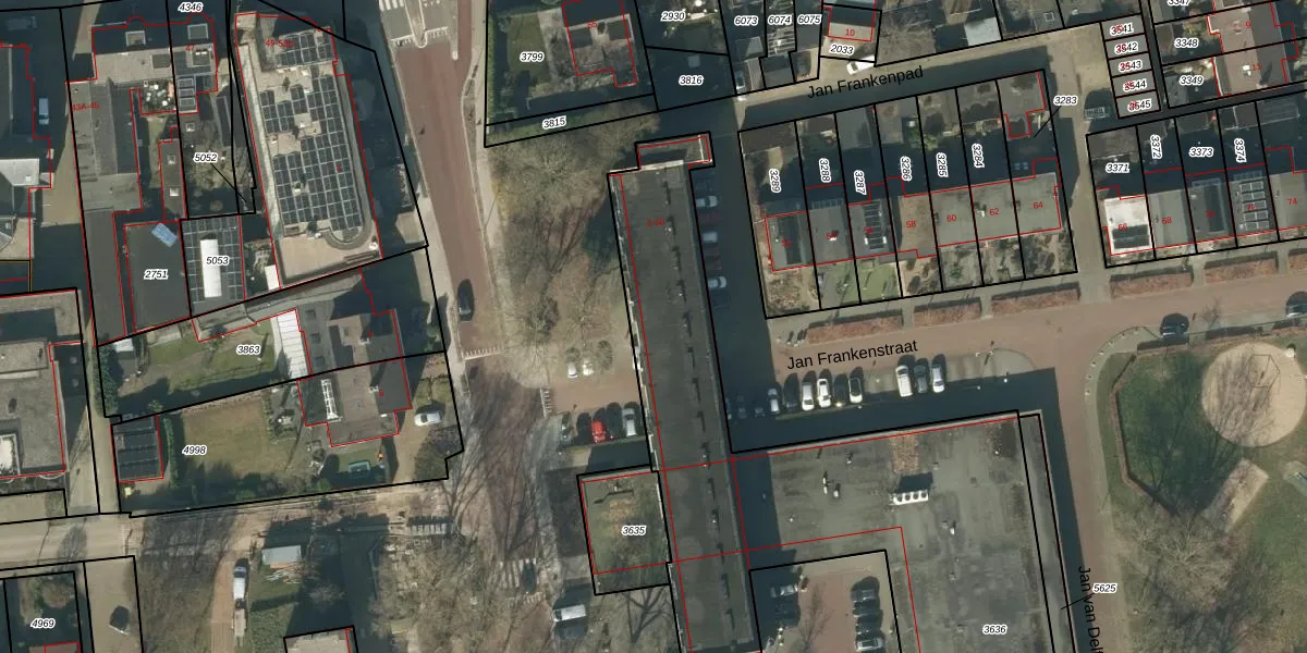 Jan Frankenstraat 8 is gelegen op kadastraal perceel RML00E3636. Deze kadastrale aanduiding is uniek en wordt gebruikt door het Kadaster om eigendomsrechten en andere zakelijke rechten vast te leggen. Het perceel maakt onderdeel uit van de kadastrale gemeente Rosmalen.