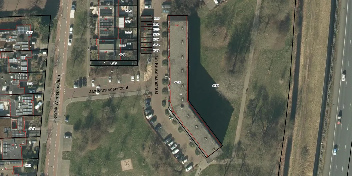 Het perceel waarop Jan Krusemanstraat 66 staat heeft een oppervlakte van 976 m². Dit is een groot perceel. De perceeloppervlakte wordt geregistreerd door het Kadaster. Gedetailleerde informatie over de maten van dit perceel kunt u vinden in het rapport Kadastrale kaart met maatvoering van Jan Krusemanstraat 66.