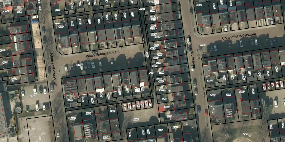 Het perceel waarop Johan Enthovenstraat 20 staat heeft een oppervlakte van 136 m². Dit is een middelgroot perceel. De perceeloppervlakte wordt geregistreerd door het Kadaster. Gedetailleerde informatie over de maten van dit perceel kunt u vinden in het rapport Kadastrale kaart met maatvoering van Johan Enthovenstraat 20.