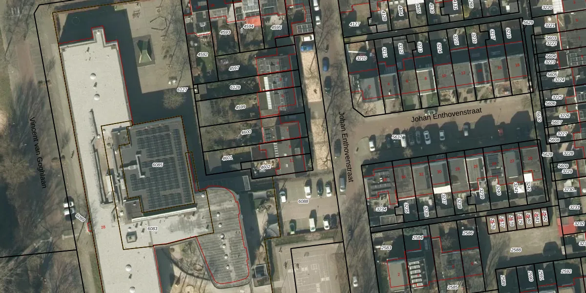 Het perceel waarop Johan Enthovenstraat 9 staat heeft een oppervlakte van 230 m². Dit is een middelgroot perceel. De perceeloppervlakte wordt geregistreerd door het Kadaster. Gedetailleerde informatie over de maten van dit perceel kunt u vinden in het rapport Kadastrale kaart met maatvoering van Johan Enthovenstraat 9.