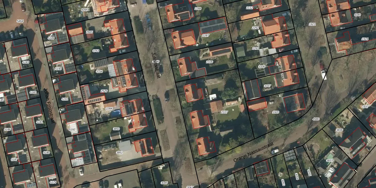 Julianastraat 5 is gelegen op kadastraal perceel RML00E2107. Deze kadastrale aanduiding is uniek en wordt gebruikt door het Kadaster om eigendomsrechten en andere zakelijke rechten vast te leggen. Het perceel maakt onderdeel uit van de kadastrale gemeente Rosmalen.