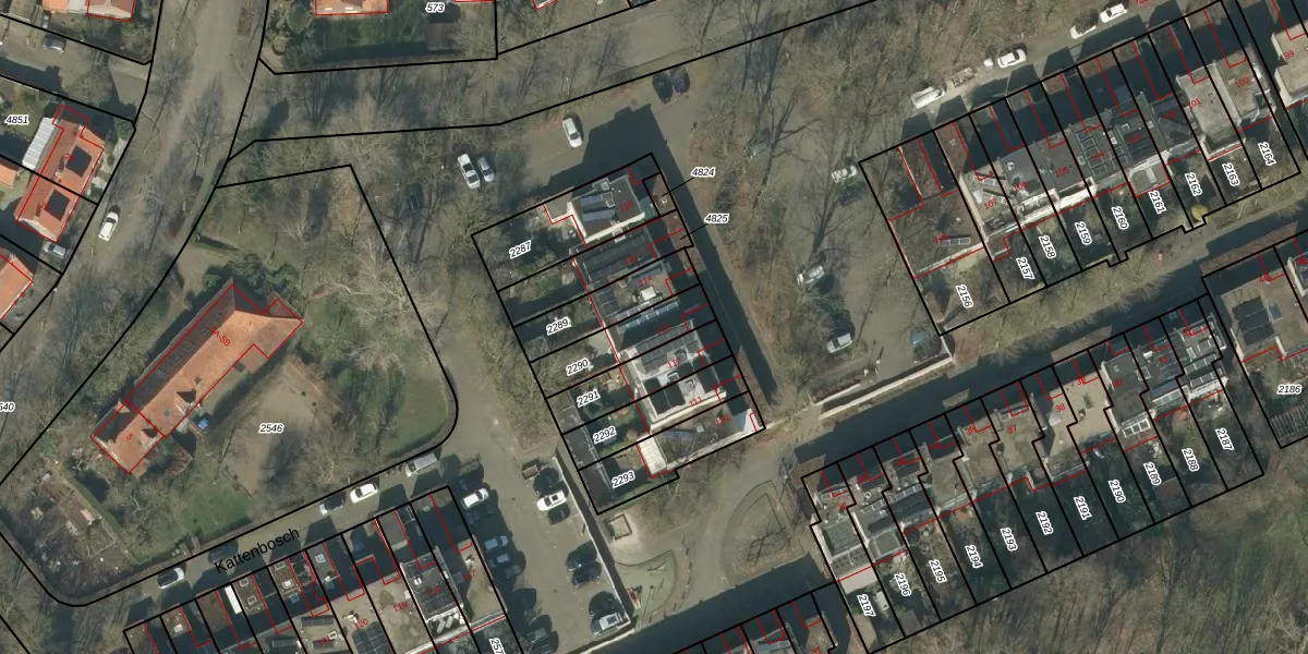 Het perceel waarop Kattenbosch 113 staat heeft een oppervlakte van 174 m². Dit is een middelgroot perceel. De perceeloppervlakte wordt geregistreerd door het Kadaster. Gedetailleerde informatie over de maten van dit perceel kunt u vinden in het rapport Kadastrale kaart met maatvoering van Kattenbosch 113.