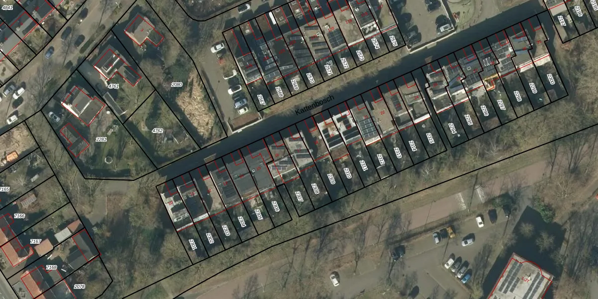 Het perceel waarop Kattenbosch 17 staat heeft een oppervlakte van 174 m². Dit is een middelgroot perceel. De perceeloppervlakte wordt geregistreerd door het Kadaster. Gedetailleerde informatie over de maten van dit perceel kunt u vinden in het rapport Kadastrale kaart met maatvoering van Kattenbosch 17.