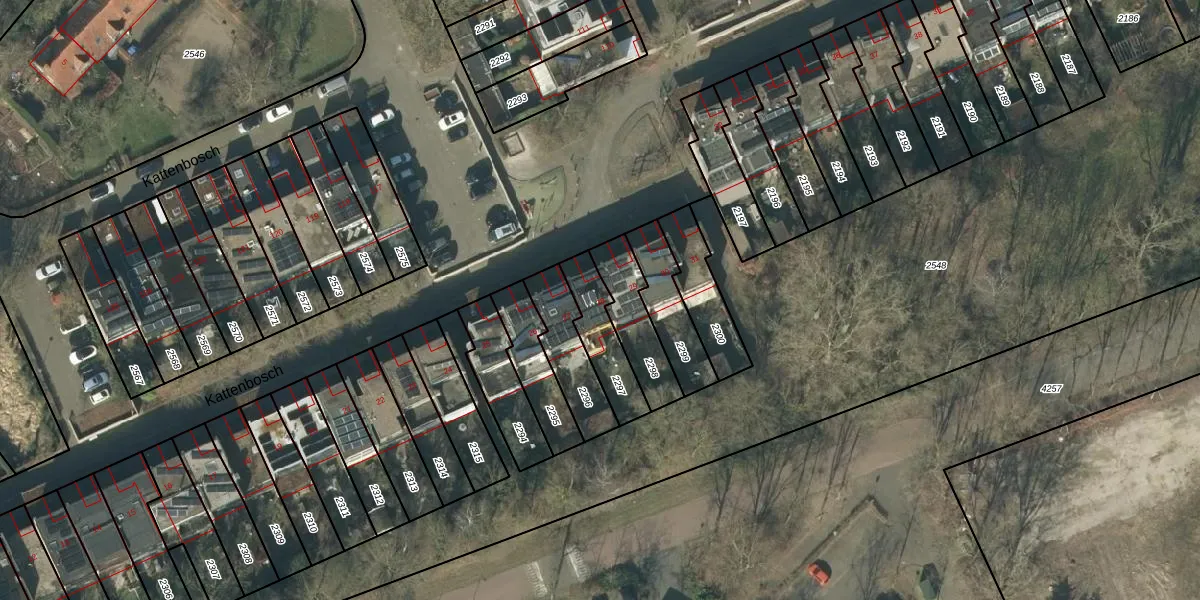 Het perceel waarop Kattenbosch 28 staat heeft een oppervlakte van 174 m². Dit is een middelgroot perceel. De perceeloppervlakte wordt geregistreerd door het Kadaster. Gedetailleerde informatie over de maten van dit perceel kunt u vinden in het rapport Kadastrale kaart met maatvoering van Kattenbosch 28.