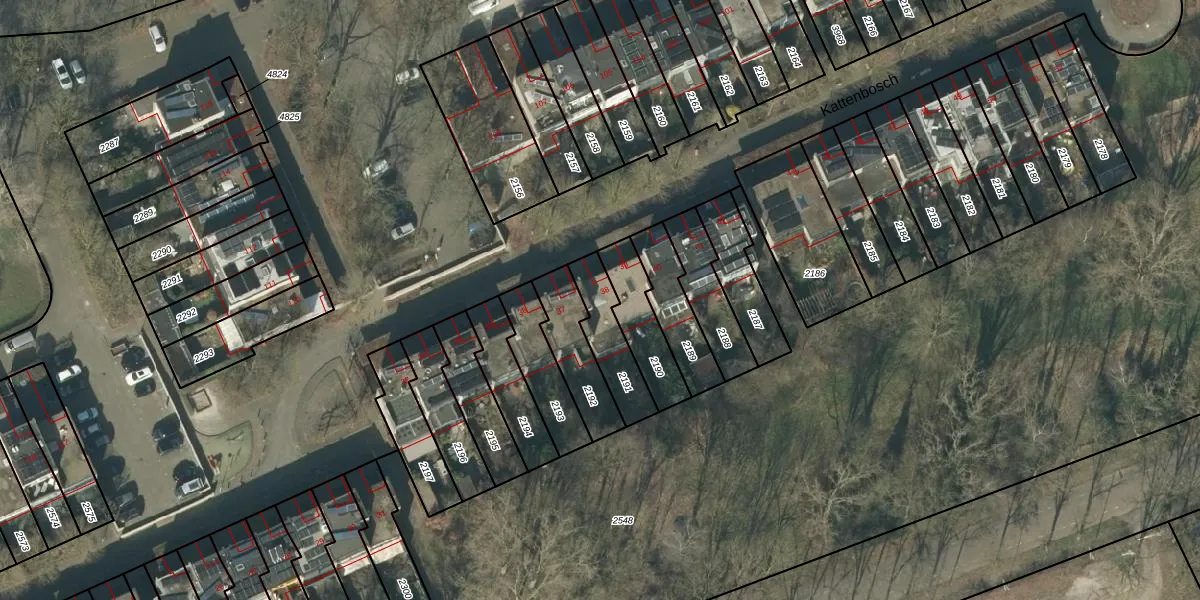 Het perceel waarop Kattenbosch 38 staat heeft een oppervlakte van 174 m². Dit is een middelgroot perceel. De perceeloppervlakte wordt geregistreerd door het Kadaster. Gedetailleerde informatie over de maten van dit perceel kunt u vinden in het rapport Kadastrale kaart met maatvoering van Kattenbosch 38.
