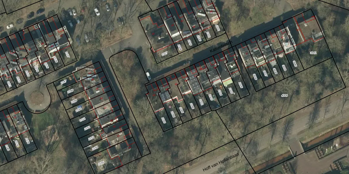 Het perceel waarop Kattenbosch 65 staat heeft een oppervlakte van 174 m². Dit is een middelgroot perceel. De perceeloppervlakte wordt geregistreerd door het Kadaster. Gedetailleerde informatie over de maten van dit perceel kunt u vinden in het rapport Kadastrale kaart met maatvoering van Kattenbosch 65.