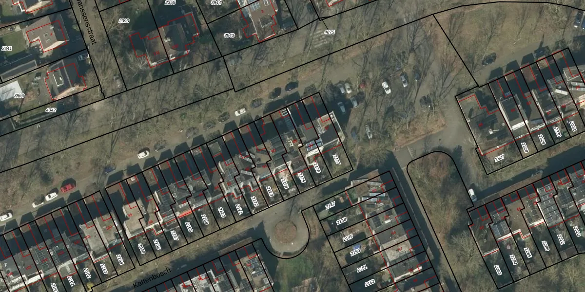 Het perceel waarop Kattenbosch 89 staat heeft een oppervlakte van 174 m². Dit is een middelgroot perceel. De perceeloppervlakte wordt geregistreerd door het Kadaster. Gedetailleerde informatie over de maten van dit perceel kunt u vinden in het rapport Kadastrale kaart met maatvoering van Kattenbosch 89.