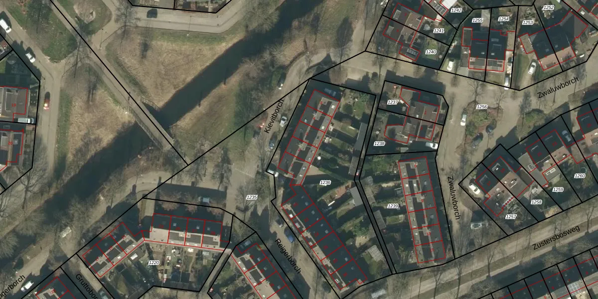 Het perceel waarop Kievitborch 2 staat heeft een oppervlakte van 1799 m². Dit is een zeer groot perceel. De perceeloppervlakte wordt geregistreerd door het Kadaster. Gedetailleerde informatie over de maten van dit perceel kunt u vinden in het rapport Kadastrale kaart met maatvoering van Kievitborch 2.