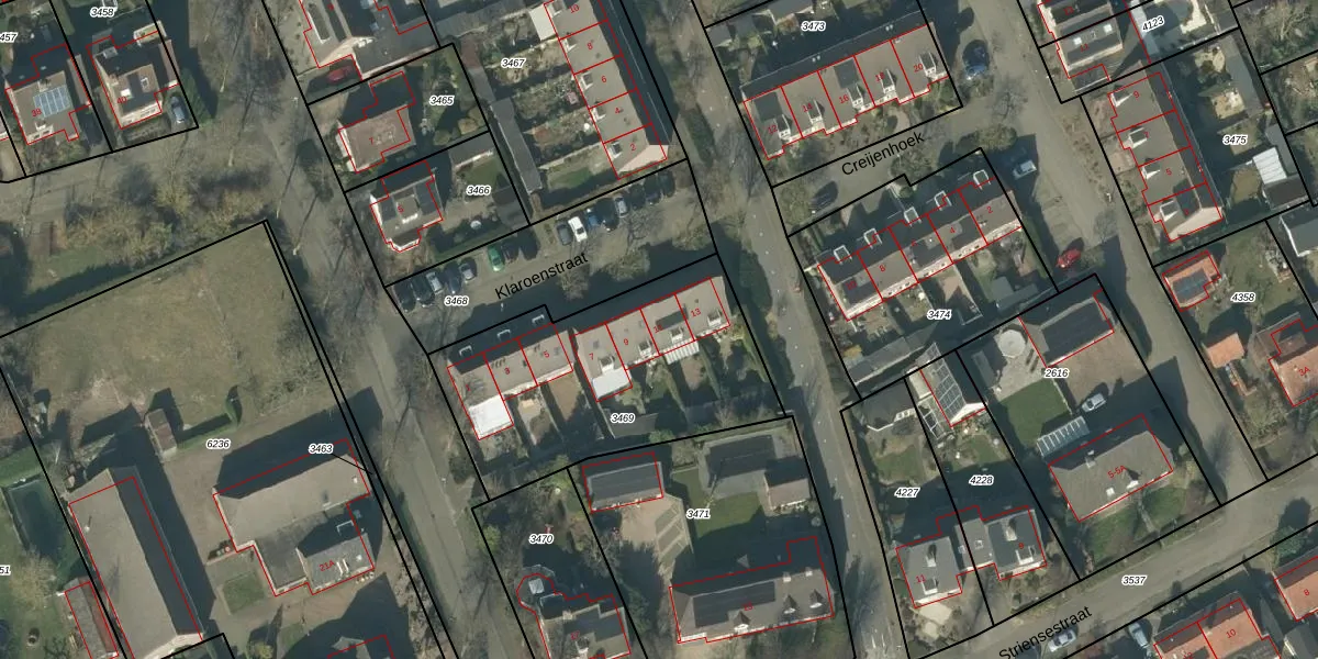 Klaroenstraat 11 is gelegen op kadastraal perceel RML00H3469. Deze kadastrale aanduiding is uniek en wordt gebruikt door het Kadaster om eigendomsrechten en andere zakelijke rechten vast te leggen. Het perceel maakt onderdeel uit van de kadastrale gemeente Rosmalen.