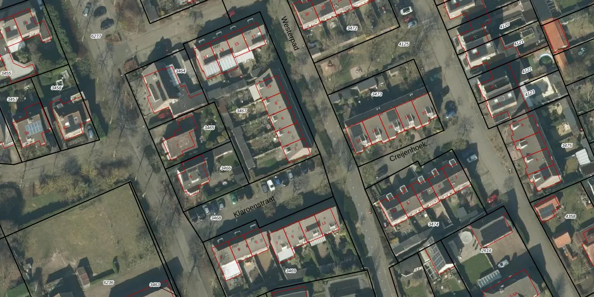 Het perceel waarop Klaroenstraat 2 staat heeft een oppervlakte van 1396 m². Dit is een zeer groot perceel. De perceeloppervlakte wordt geregistreerd door het Kadaster. Gedetailleerde informatie over de maten van dit perceel kunt u vinden in het rapport Kadastrale kaart met maatvoering van Klaroenstraat 2.