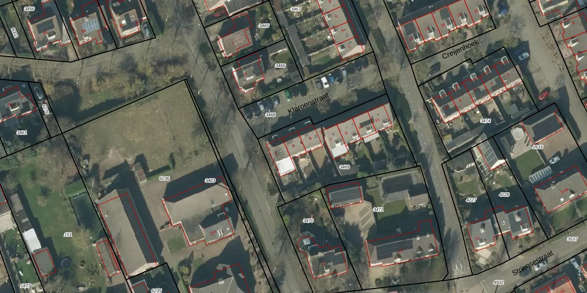 Klaroenstraat 3 is gelegen op kadastraal perceel RML00H3469. Deze kadastrale aanduiding is uniek en wordt gebruikt door het Kadaster om eigendomsrechten en andere zakelijke rechten vast te leggen. Het perceel maakt onderdeel uit van de kadastrale gemeente Rosmalen.