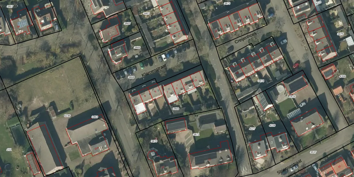 Klaroenstraat 9 is gelegen op kadastraal perceel RML00H3469. Deze kadastrale aanduiding is uniek en wordt gebruikt door het Kadaster om eigendomsrechten en andere zakelijke rechten vast te leggen. Het perceel maakt onderdeel uit van de kadastrale gemeente Rosmalen.