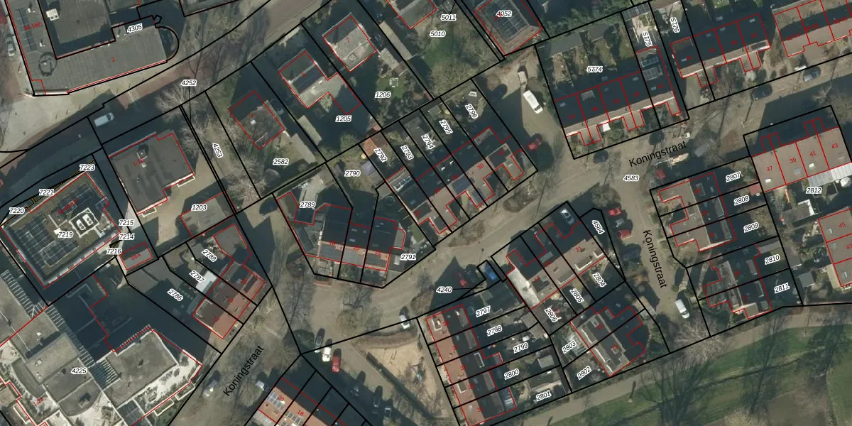 Het perceel waarop Koningstraat 24 staat heeft een oppervlakte van 165 m². Dit is een middelgroot perceel. De perceeloppervlakte wordt geregistreerd door het Kadaster. Gedetailleerde informatie over de maten van dit perceel kunt u vinden in het rapport Kadastrale kaart met maatvoering van Koningstraat 24.