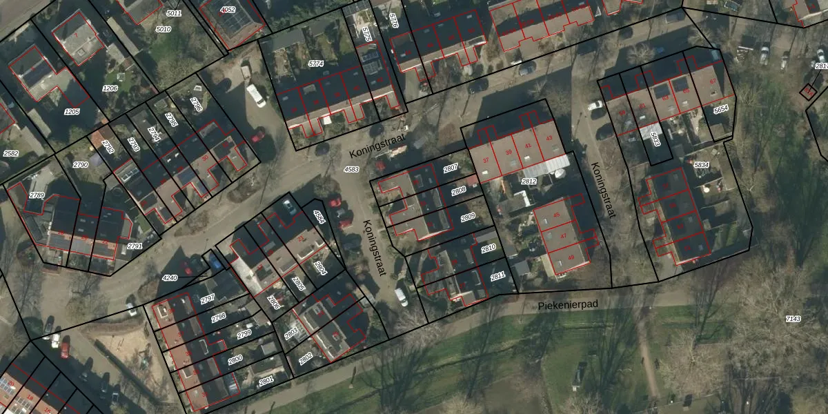 Het perceel waarop Koningstraat 33 staat heeft een oppervlakte van 136 m². Dit is een middelgroot perceel. De perceeloppervlakte wordt geregistreerd door het Kadaster. Gedetailleerde informatie over de maten van dit perceel kunt u vinden in het rapport Kadastrale kaart met maatvoering van Koningstraat 33.