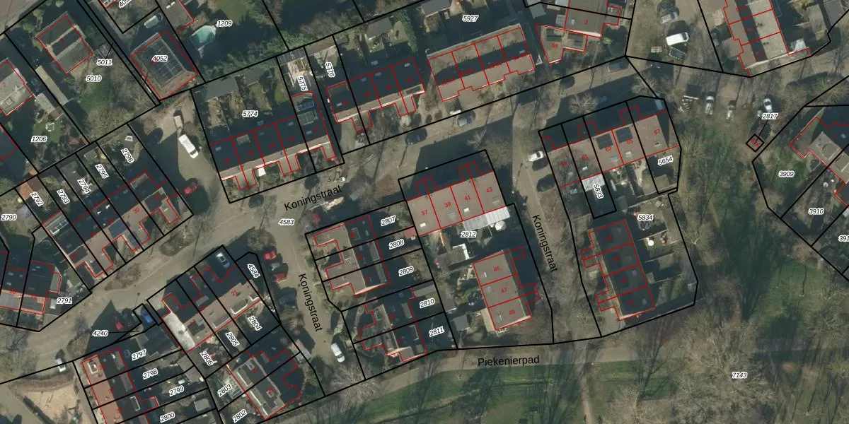 Het perceel waarop Koningstraat 37 staat heeft een oppervlakte van 1058 m². Dit is een zeer groot perceel. De perceeloppervlakte wordt geregistreerd door het Kadaster. Gedetailleerde informatie over de maten van dit perceel kunt u vinden in het rapport Kadastrale kaart met maatvoering van Koningstraat 37.