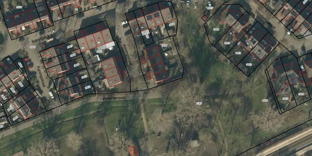 Het perceel waarop Koningstraat 51 staat heeft een oppervlakte van 1081 m². Dit is een zeer groot perceel. De perceeloppervlakte wordt geregistreerd door het Kadaster. Gedetailleerde informatie over de maten van dit perceel kunt u vinden in het rapport Kadastrale kaart met maatvoering van Koningstraat 51.