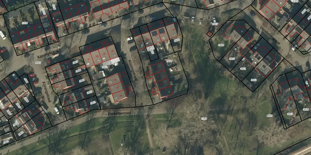 Het perceel waarop Koningstraat 55 staat heeft een oppervlakte van 1081 m². Dit is een zeer groot perceel. De perceeloppervlakte wordt geregistreerd door het Kadaster. Gedetailleerde informatie over de maten van dit perceel kunt u vinden in het rapport Kadastrale kaart met maatvoering van Koningstraat 55.