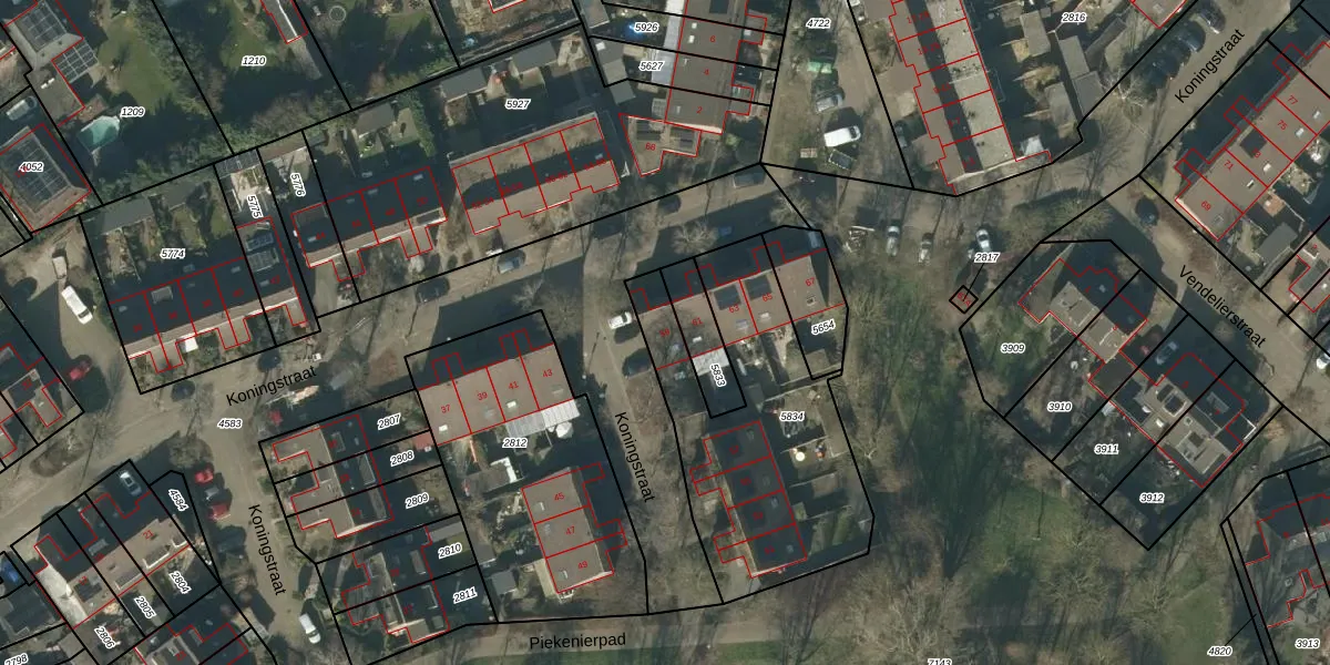 Het perceel waarop Koningstraat 59 staat heeft een oppervlakte van 1081 m². Dit is een zeer groot perceel. De perceeloppervlakte wordt geregistreerd door het Kadaster. Gedetailleerde informatie over de maten van dit perceel kunt u vinden in het rapport Kadastrale kaart met maatvoering van Koningstraat 59.