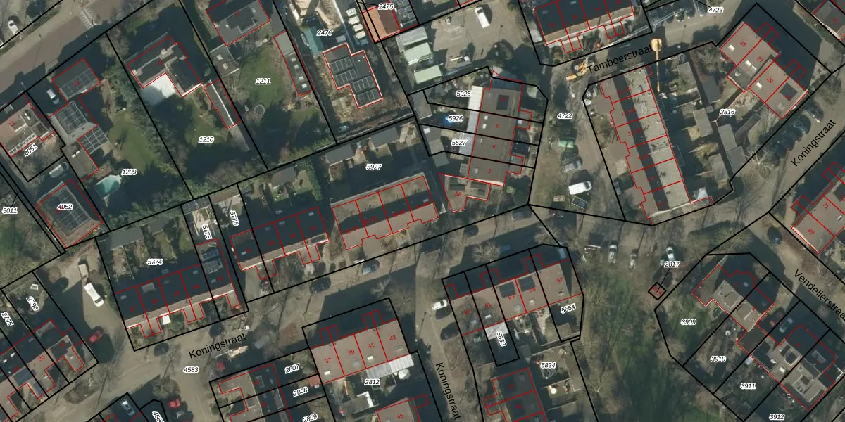Het perceel waarop Koningstraat 64 staat heeft een oppervlakte van 1580 m². Dit is een zeer groot perceel. De perceeloppervlakte wordt geregistreerd door het Kadaster. Gedetailleerde informatie over de maten van dit perceel kunt u vinden in het rapport Kadastrale kaart met maatvoering van Koningstraat 64.