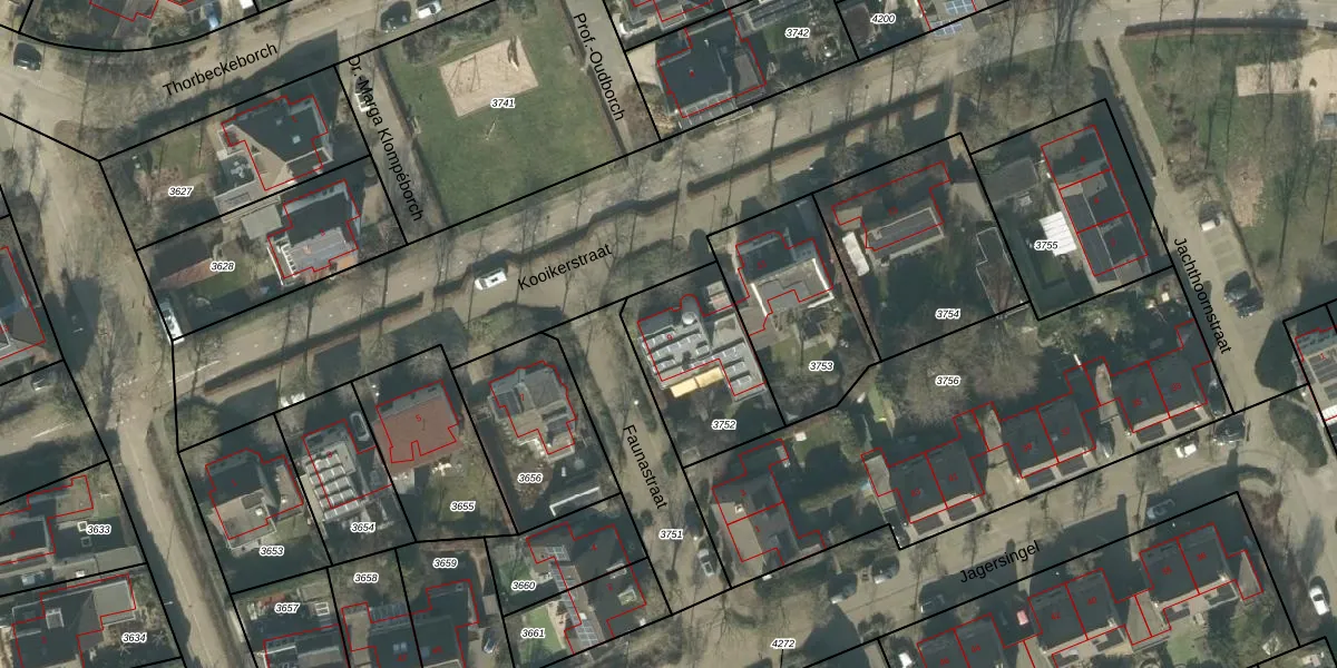 Het perceel waarop Kooikerstraat 9 staat heeft een oppervlakte van 442 m². Dit is een groot perceel. De perceeloppervlakte wordt geregistreerd door het Kadaster. Gedetailleerde informatie over de maten van dit perceel kunt u vinden in het rapport Kadastrale kaart met maatvoering van Kooikerstraat 9.