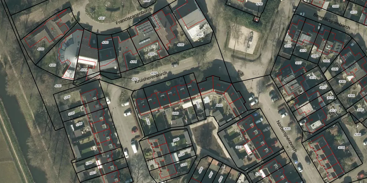 Het perceel waarop Kruisherenborch 12 staat heeft een oppervlakte van 589 m². Dit is een groot perceel. De perceeloppervlakte wordt geregistreerd door het Kadaster. Gedetailleerde informatie over de maten van dit perceel kunt u vinden in het rapport Kadastrale kaart met maatvoering van Kruisherenborch 12.