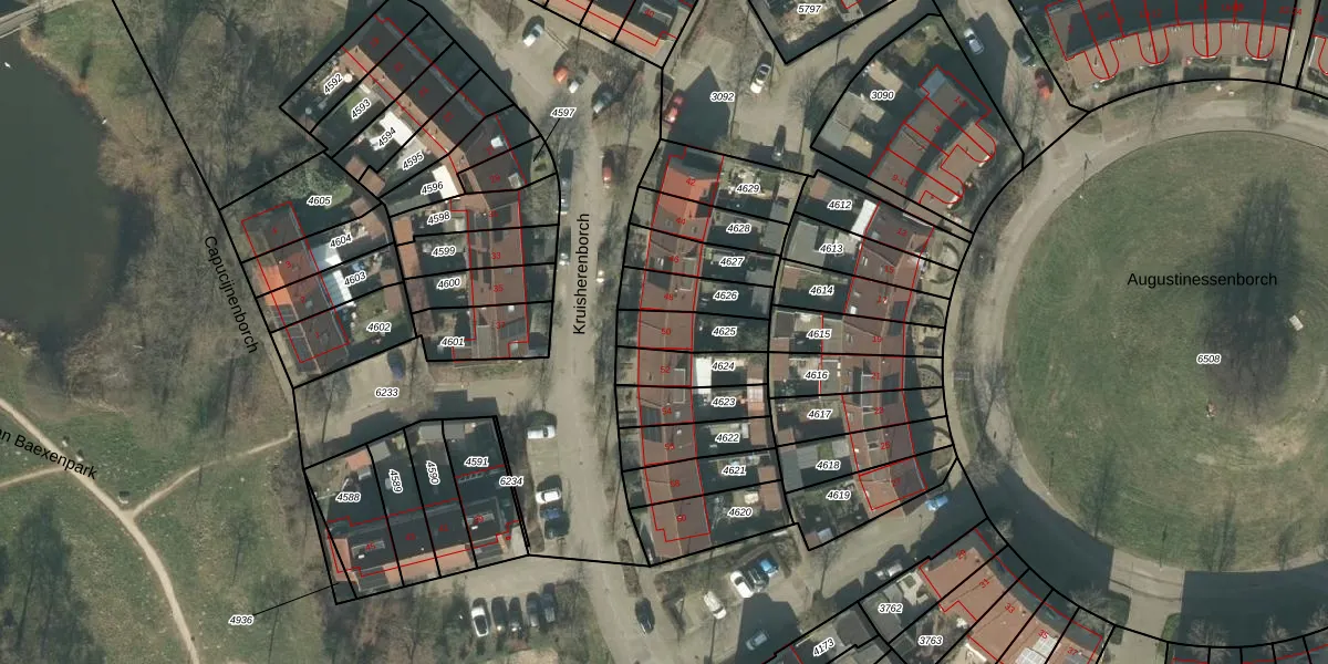 Gebruik de zoekbalk of klik op een perceel voor informatie over de adressen binnen dit perceel.