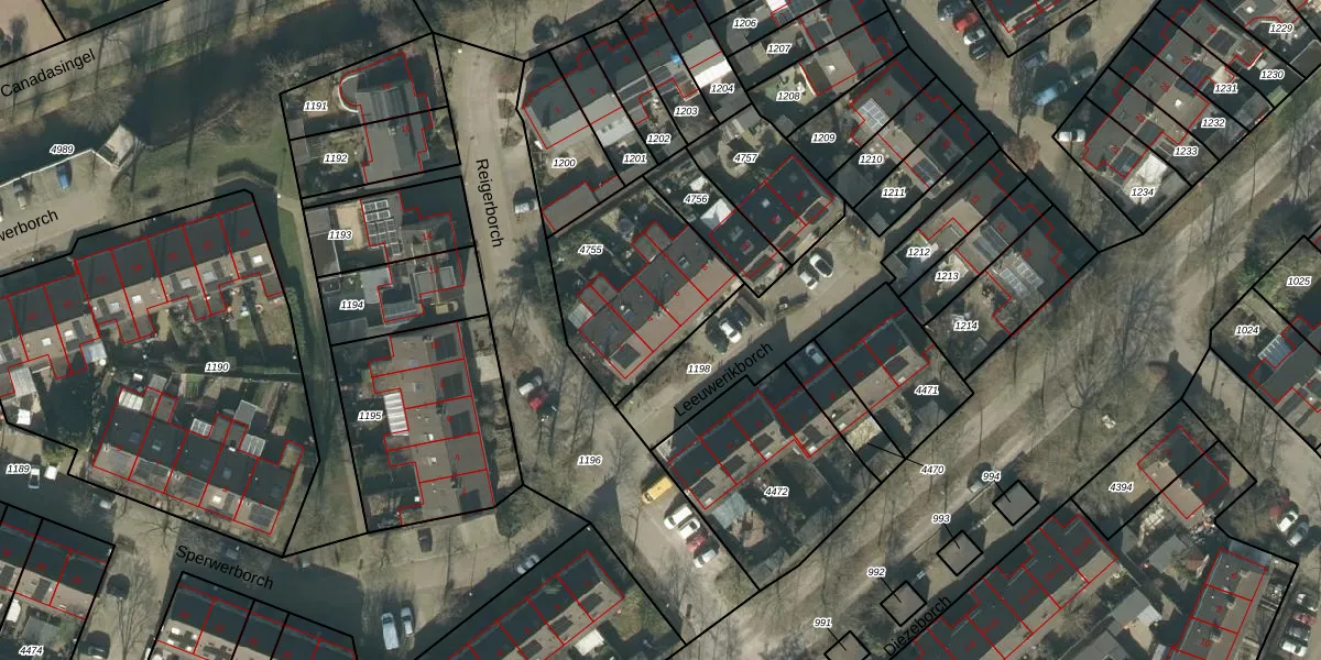 Het perceel waarop Leeuwerikborch 4 staat heeft een oppervlakte van 585 m². Dit is een groot perceel. De perceeloppervlakte wordt geregistreerd door het Kadaster. Gedetailleerde informatie over de maten van dit perceel kunt u vinden in het rapport Kadastrale kaart met maatvoering van Leeuwerikborch 4.