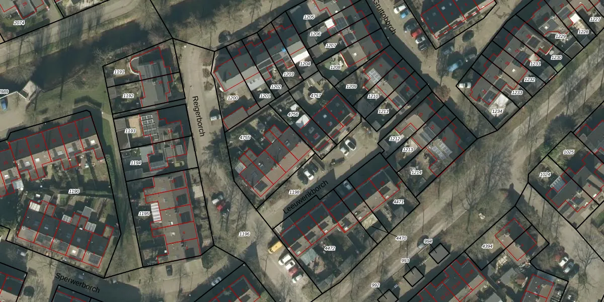 Het perceel waarop Leeuwerikborch 8 staat heeft een oppervlakte van 585 m². Dit is een groot perceel. De perceeloppervlakte wordt geregistreerd door het Kadaster. Gedetailleerde informatie over de maten van dit perceel kunt u vinden in het rapport Kadastrale kaart met maatvoering van Leeuwerikborch 8.