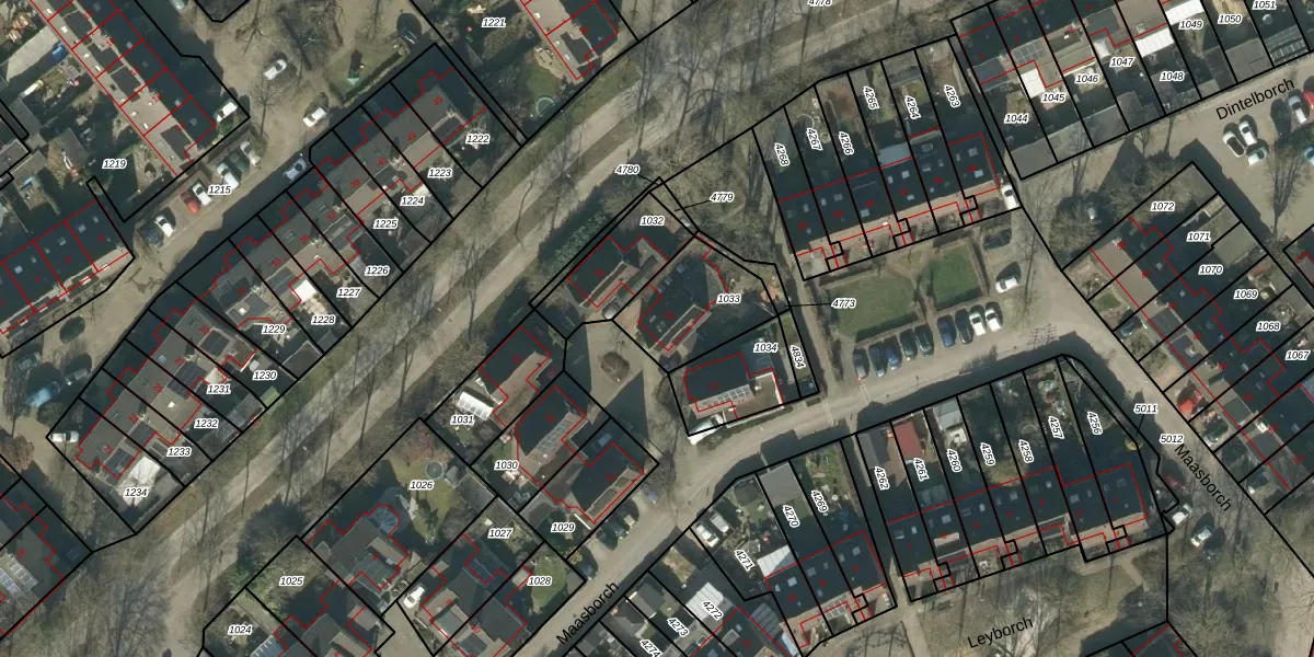 Het perceel waarop Maasborch 20 staat heeft een oppervlakte van 282 m². Dit is een middelgroot perceel. De perceeloppervlakte wordt geregistreerd door het Kadaster. Gedetailleerde informatie over de maten van dit perceel kunt u vinden in het rapport Kadastrale kaart met maatvoering van Maasborch 20.