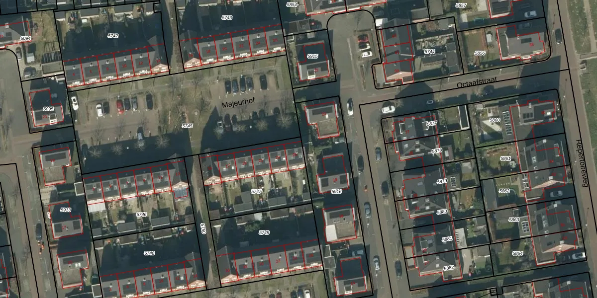 Het perceel waarop Majeurhof 25 staat heeft een oppervlakte van 785 m². Dit is een groot perceel. De perceeloppervlakte wordt geregistreerd door het Kadaster. Gedetailleerde informatie over de maten van dit perceel kunt u vinden in het rapport Kadastrale kaart met maatvoering van Majeurhof 25.