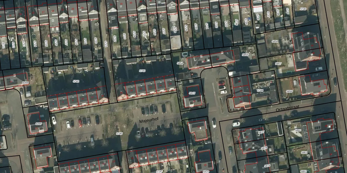 Het perceel waarop Majeurhof 26 staat heeft een oppervlakte van 815 m². Dit is een groot perceel. De perceeloppervlakte wordt geregistreerd door het Kadaster. Gedetailleerde informatie over de maten van dit perceel kunt u vinden in het rapport Kadastrale kaart met maatvoering van Majeurhof 26.