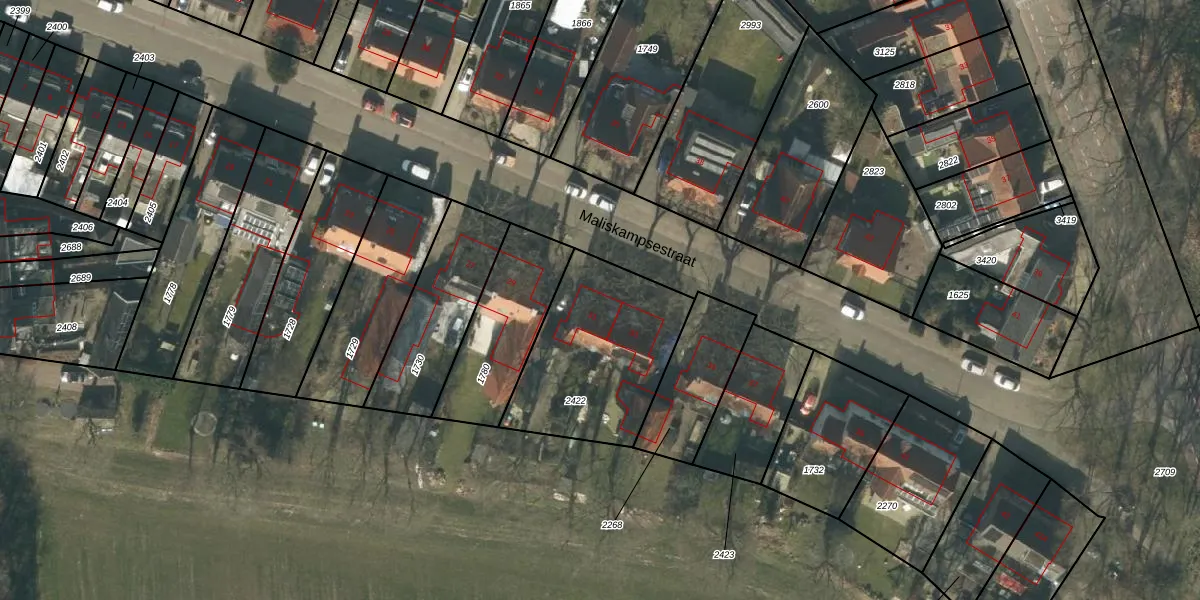 Het perceel waarop Maliskampsestraat 31 staat heeft een oppervlakte van 649 m². Dit is een groot perceel. De perceeloppervlakte wordt geregistreerd door het Kadaster. Gedetailleerde informatie over de maten van dit perceel kunt u vinden in het rapport Kadastrale kaart met maatvoering van Maliskampsestraat 31.