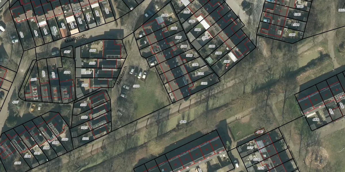 Markborch 10 is gelegen op kadastraal perceel RML00I1101. Deze kadastrale aanduiding is uniek en wordt gebruikt door het Kadaster om eigendomsrechten en andere zakelijke rechten vast te leggen. Het perceel maakt onderdeel uit van de kadastrale gemeente Rosmalen.