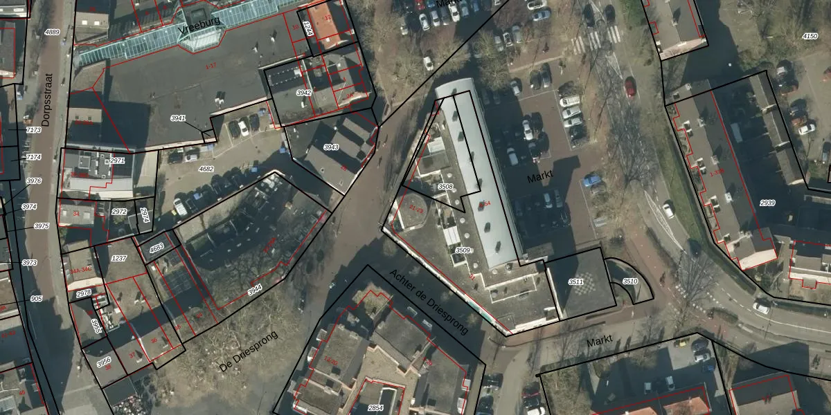 Het perceel waarop Markt 16 staat heeft een oppervlakte van 946 m². Dit is een groot perceel. De perceeloppervlakte wordt geregistreerd door het Kadaster. Gedetailleerde informatie over de maten van dit perceel kunt u vinden in het rapport Kadastrale kaart met maatvoering van Markt 16.