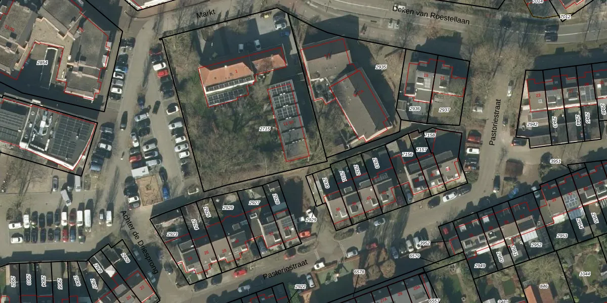 Het perceel waarop Markt 21 staat heeft een oppervlakte van 2222 m². Dit is een zeer groot perceel. De perceeloppervlakte wordt geregistreerd door het Kadaster. Gedetailleerde informatie over de maten van dit perceel kunt u vinden in het rapport Kadastrale kaart met maatvoering van Markt 21.