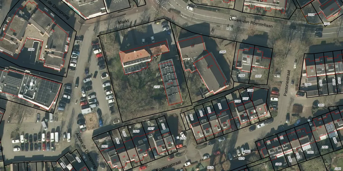Het perceel waarop Markt 29 staat heeft een oppervlakte van 2222 m². Dit is een zeer groot perceel. De perceeloppervlakte wordt geregistreerd door het Kadaster. Gedetailleerde informatie over de maten van dit perceel kunt u vinden in het rapport Kadastrale kaart met maatvoering van Markt 29.