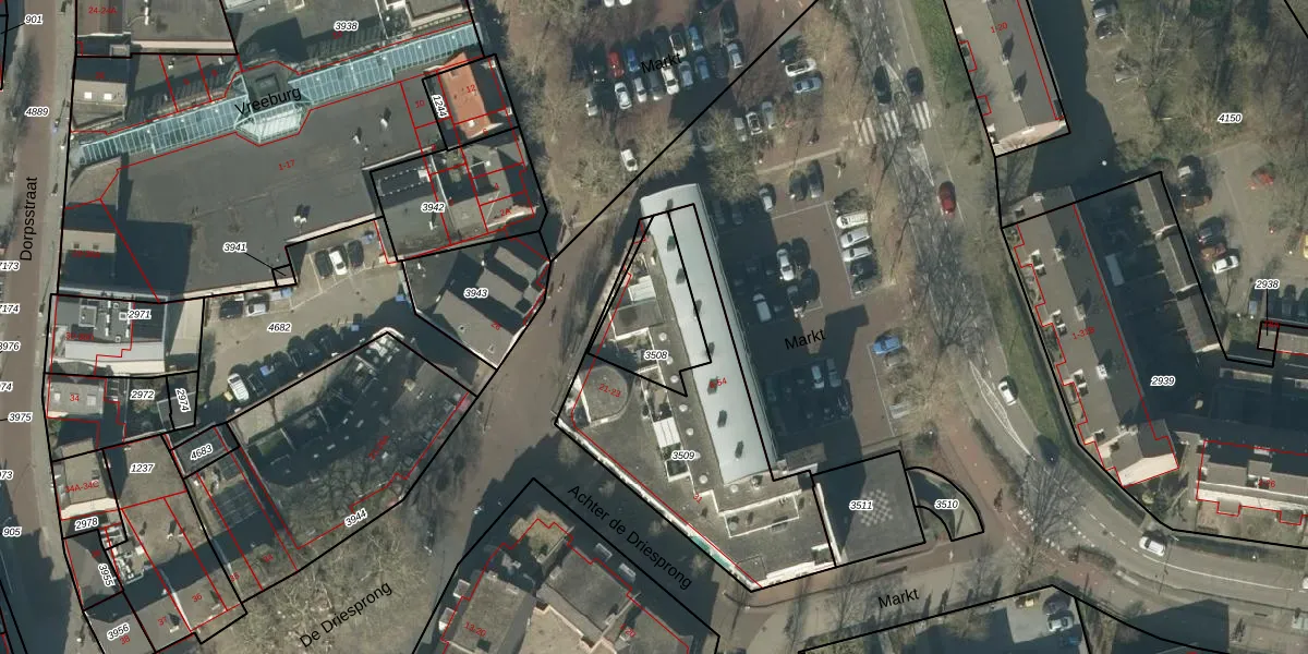 Het perceel waarop Markt 38 staat heeft een oppervlakte van 258 m². Dit is een middelgroot perceel. De perceeloppervlakte wordt geregistreerd door het Kadaster. Gedetailleerde informatie over de maten van dit perceel kunt u vinden in het rapport Kadastrale kaart met maatvoering van Markt 38.