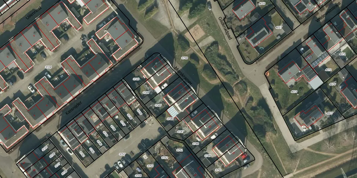 Het perceel waarop Marskramer 13 staat heeft een oppervlakte van 250 m². Dit is een middelgroot perceel. De perceeloppervlakte wordt geregistreerd door het Kadaster. Gedetailleerde informatie over de maten van dit perceel kunt u vinden in het rapport Kadastrale kaart met maatvoering van Marskramer 13.