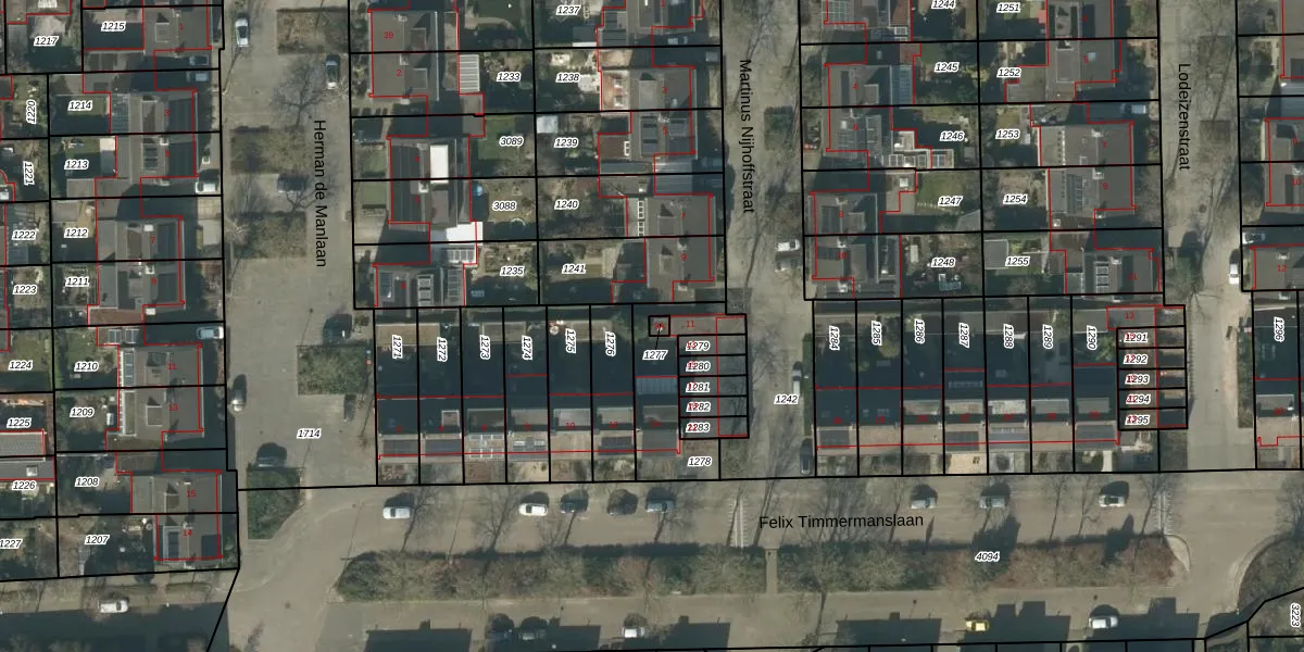 Gebruik de zoekbalk of klik op een perceel voor informatie over de adressen binnen dit perceel.