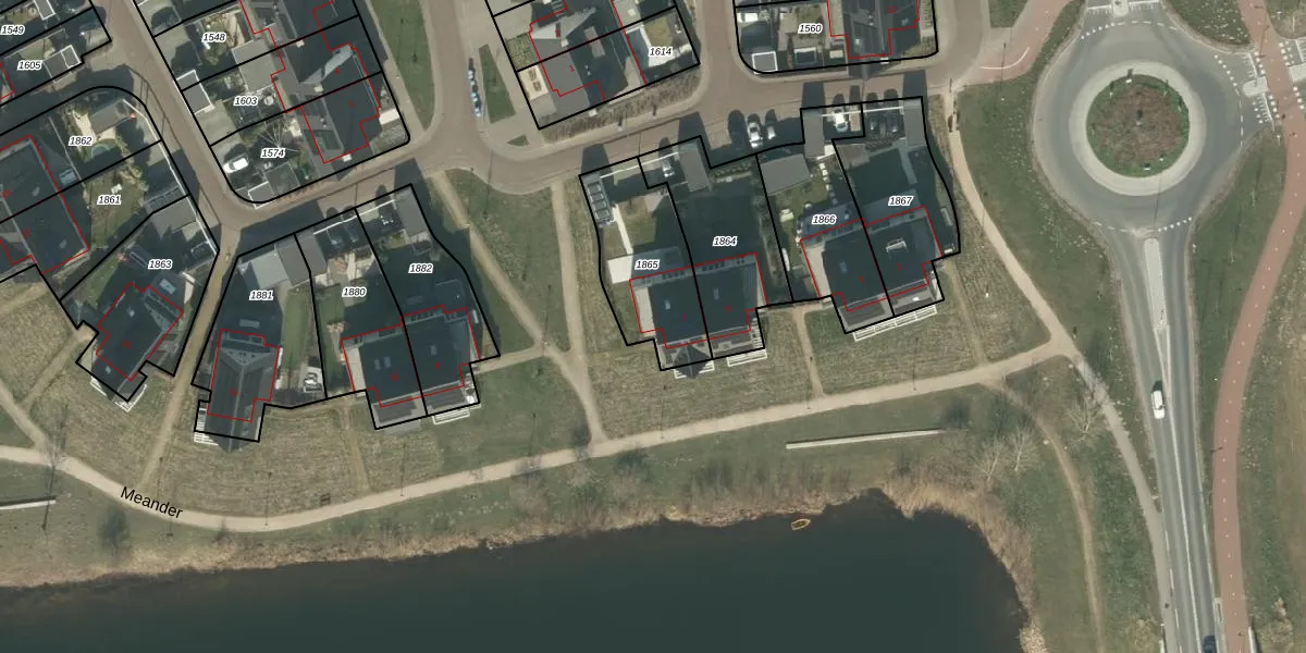 Het perceel waarop Meander 7 staat heeft een oppervlakte van 383 m². Dit is een groot perceel. De perceeloppervlakte wordt geregistreerd door het Kadaster. Gedetailleerde informatie over de maten van dit perceel kunt u vinden in het rapport Kadastrale kaart met maatvoering van Meander 7.