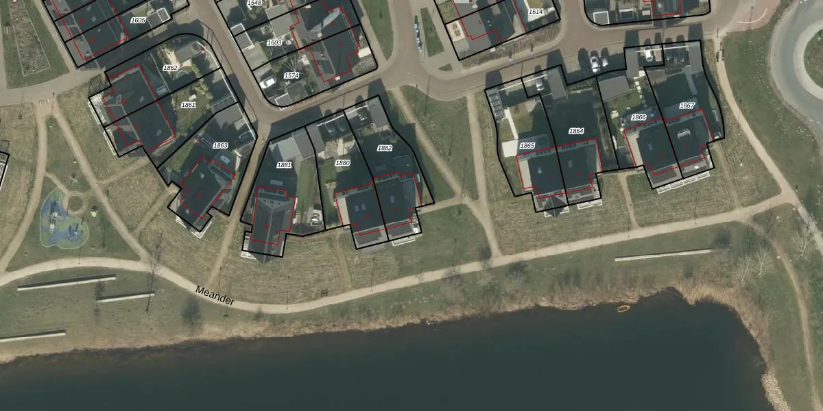 Het perceel waarop Meander 9 staat heeft een oppervlakte van 361 m². Dit is een groot perceel. De perceeloppervlakte wordt geregistreerd door het Kadaster. Gedetailleerde informatie over de maten van dit perceel kunt u vinden in het rapport Kadastrale kaart met maatvoering van Meander 9.