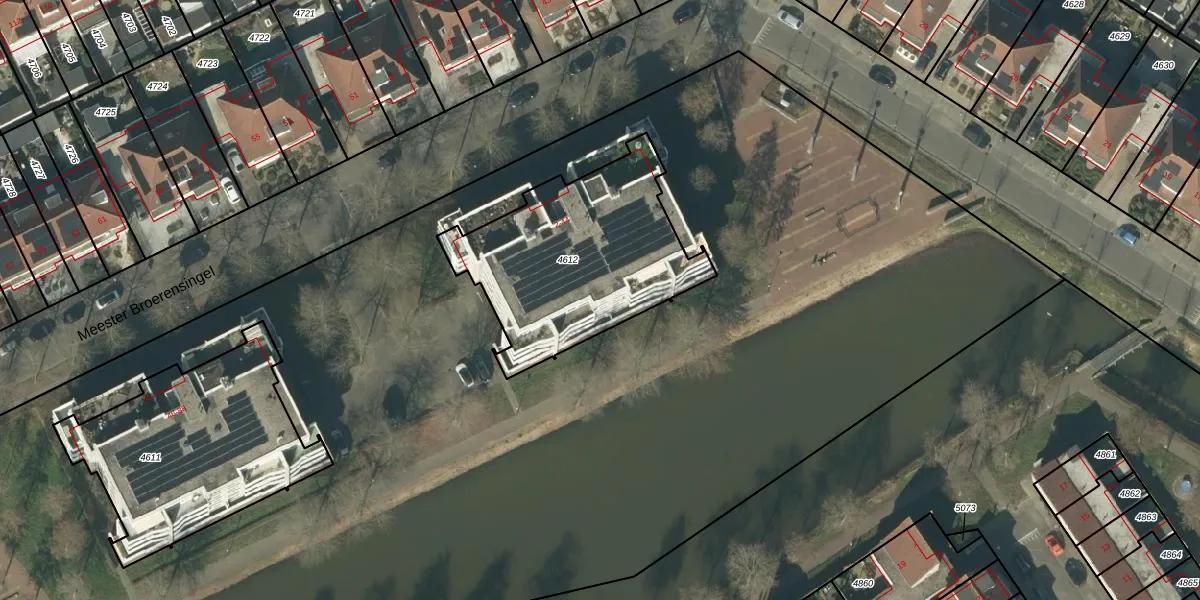 Het perceel waarop Meester Broerensingel 26 staat heeft een oppervlakte van 905 m². Dit is een groot perceel. De perceeloppervlakte wordt geregistreerd door het Kadaster. Gedetailleerde informatie over de maten van dit perceel kunt u vinden in het rapport Kadastrale kaart met maatvoering van Meester Broerensingel 26.