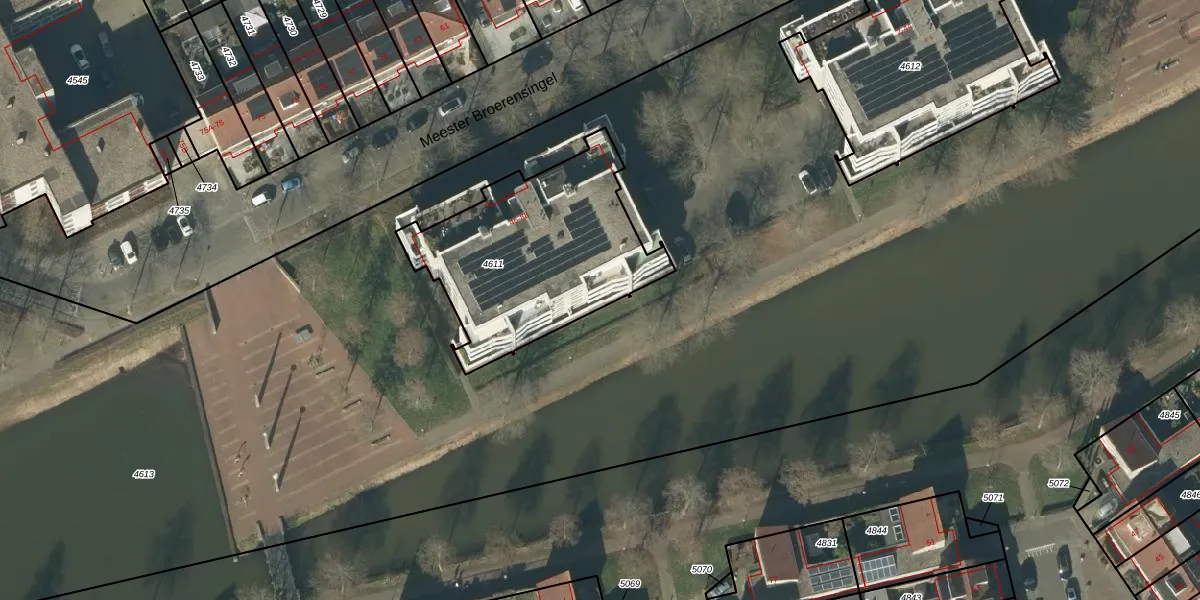 Het perceel waarop Meester Broerensingel 88 staat heeft een oppervlakte van 905 m². Dit is een groot perceel. De perceeloppervlakte wordt geregistreerd door het Kadaster. Gedetailleerde informatie over de maten van dit perceel kunt u vinden in het rapport Kadastrale kaart met maatvoering van Meester Broerensingel 88.