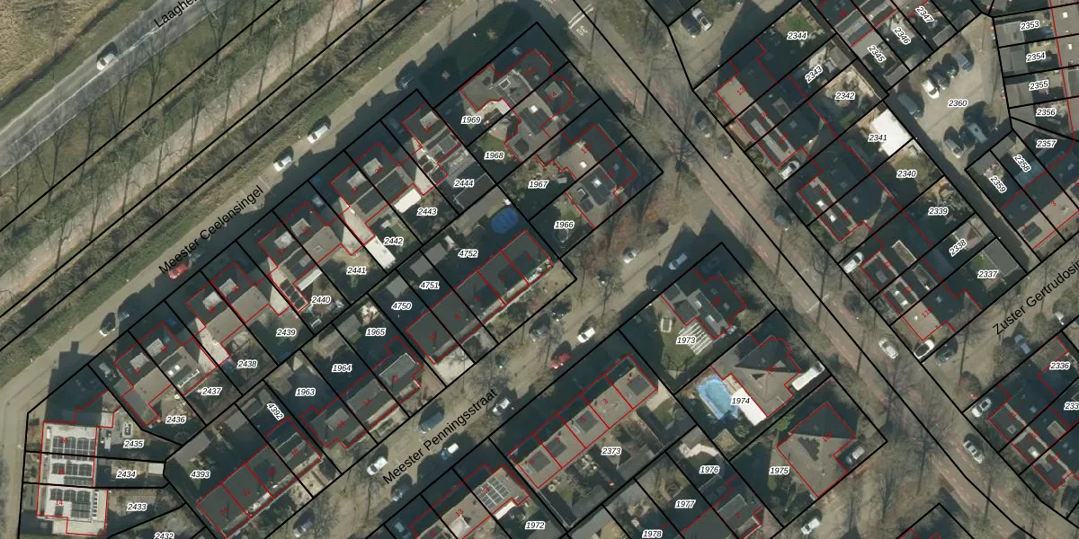Het perceel waarop Meester Penningsstraat 2 staat heeft een oppervlakte van 434 m². Dit is een groot perceel. De perceeloppervlakte wordt geregistreerd door het Kadaster. Gedetailleerde informatie over de maten van dit perceel kunt u vinden in het rapport Kadastrale kaart met maatvoering van Meester Penningsstraat 2.
