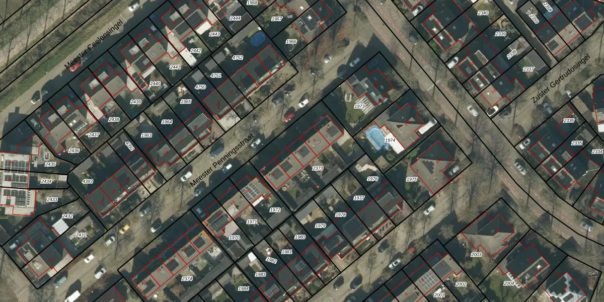 Het perceel waarop Meester Penningsstraat 5 staat heeft een oppervlakte van 721 m². Dit is een groot perceel. De perceeloppervlakte wordt geregistreerd door het Kadaster. Gedetailleerde informatie over de maten van dit perceel kunt u vinden in het rapport Kadastrale kaart met maatvoering van Meester Penningsstraat 5.
