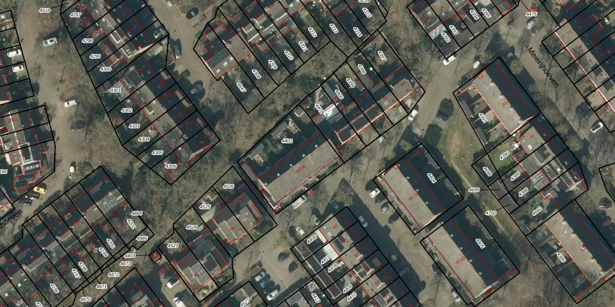 Het perceel waarop Meierijhoeven 52 staat heeft een oppervlakte van 634 m². Dit is een groot perceel. De perceeloppervlakte wordt geregistreerd door het Kadaster. Gedetailleerde informatie over de maten van dit perceel kunt u vinden in het rapport Kadastrale kaart met maatvoering van Meierijhoeven 52.