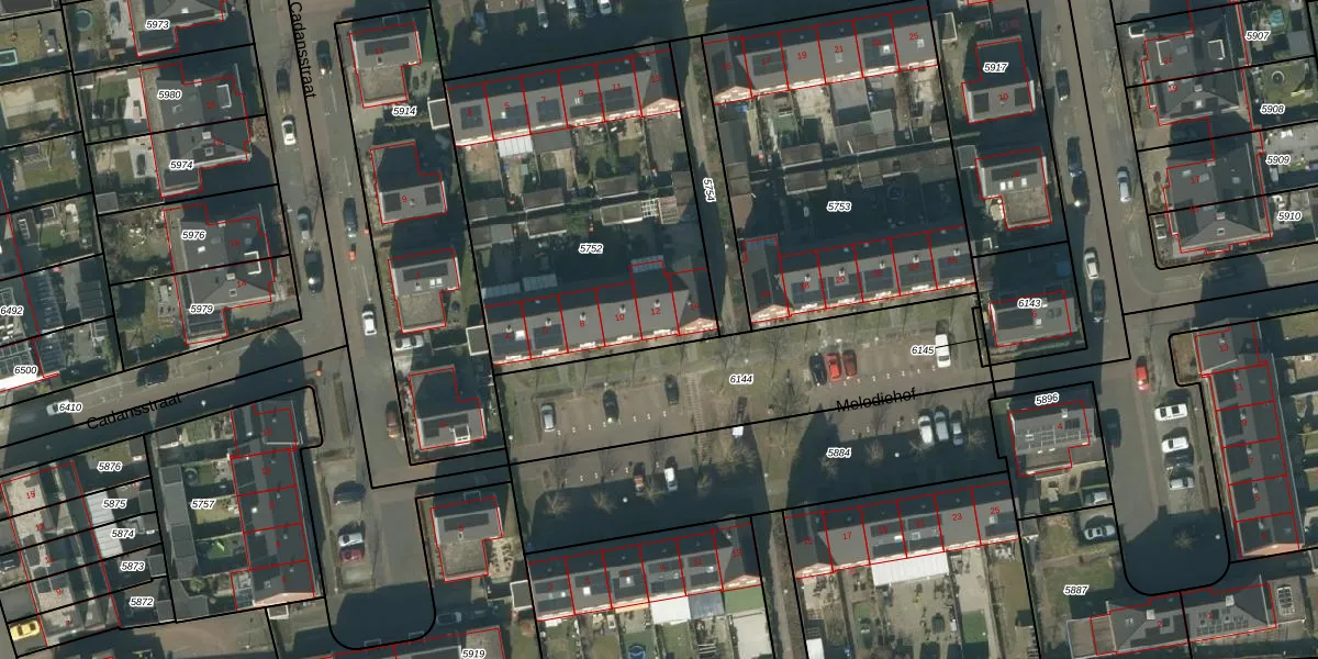 Melodiehof 12 is gelegen op kadastraal perceel RML00H5752. Deze kadastrale aanduiding is uniek en wordt gebruikt door het Kadaster om eigendomsrechten en andere zakelijke rechten vast te leggen. Het perceel maakt onderdeel uit van de kadastrale gemeente Rosmalen.