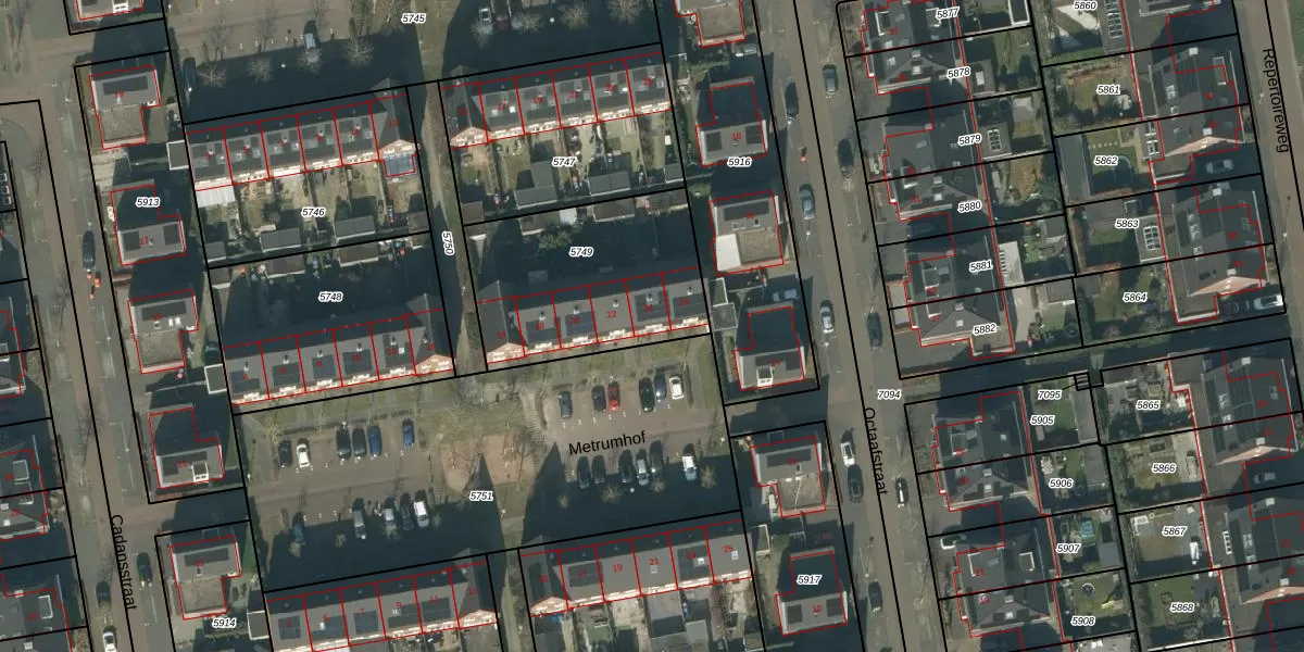 Het perceel waarop Metrumhof 24 staat heeft een oppervlakte van 790 m². Dit is een groot perceel. De perceeloppervlakte wordt geregistreerd door het Kadaster. Gedetailleerde informatie over de maten van dit perceel kunt u vinden in het rapport Kadastrale kaart met maatvoering van Metrumhof 24.
